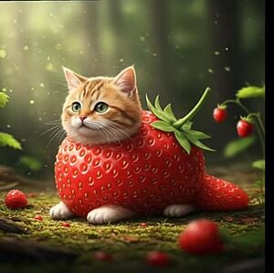 Es un híbrido entre un gato y una fresa, creado por Baby Podcast. -